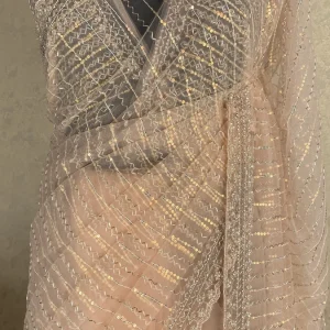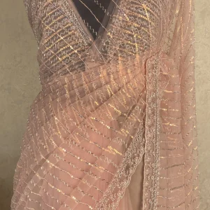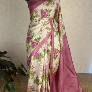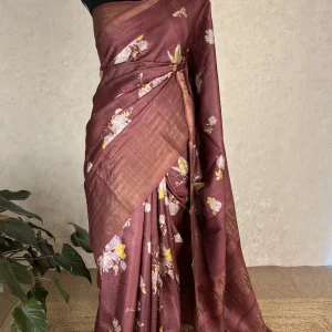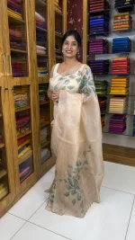 Make a statement with the timeless beauty of our Beige Floral Organza Silk Saree. Crafted from premium organza silk, this saree boasts stunning floral prints that lend a soft, romantic appeal. The intricate peeta work highlights bring an added layer of sophistication, while the scallop-bordered design enhances its grace with a perfect blend of tradition and modern style. Ideal for weddings, festivals, or special occasions, this saree is sure to make you the center of attention with its unique charm and craftsmanship.
