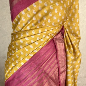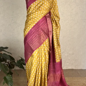 Make a statement with the timeless beauty of our Lavender Floral Organza Silk Saree. Crafted from premium organza silk, this saree boasts stunning floral prints that lend a soft, romantic appeal. The intricate peeta work highlights bring an added layer of sophistication, while the scallop-bordered design enhances its grace with a perfect blend of tradition and modern style. Ideal for weddings, festivals, or special occasions, this saree is sure to make you the center of attention with its unique charm and craftsmanship.