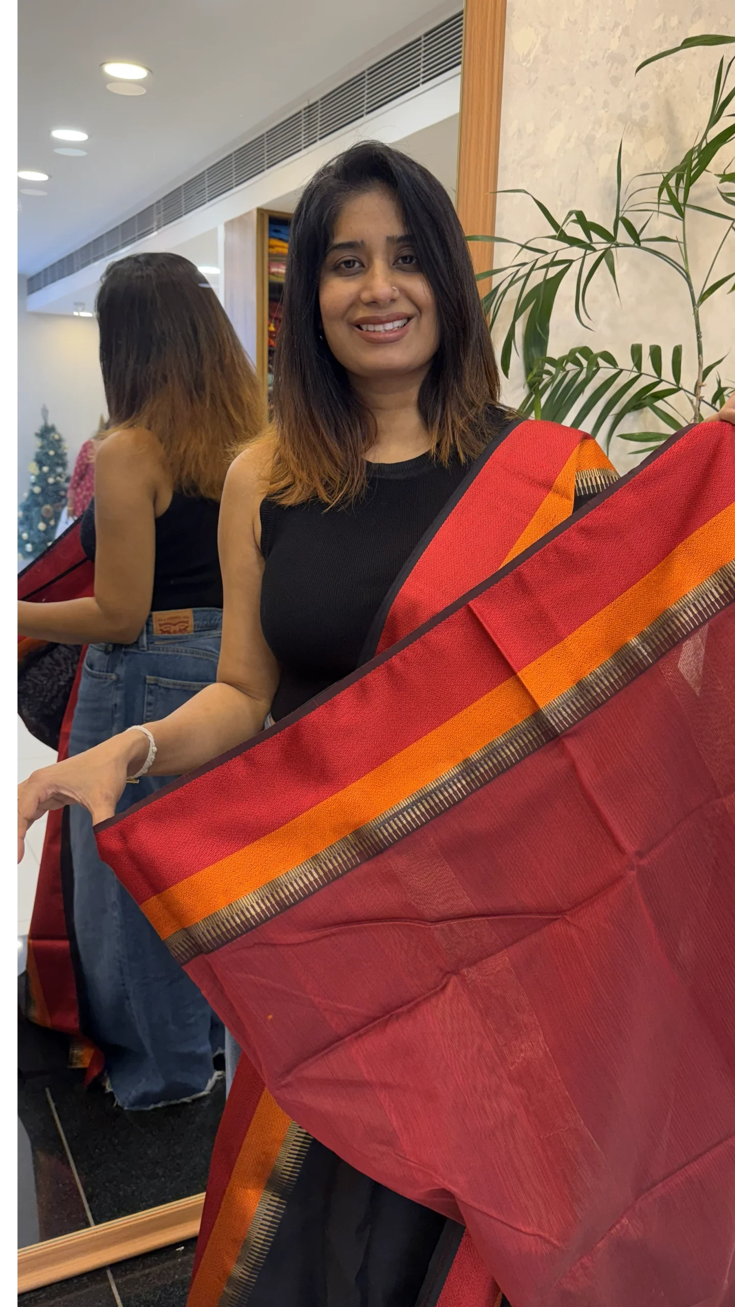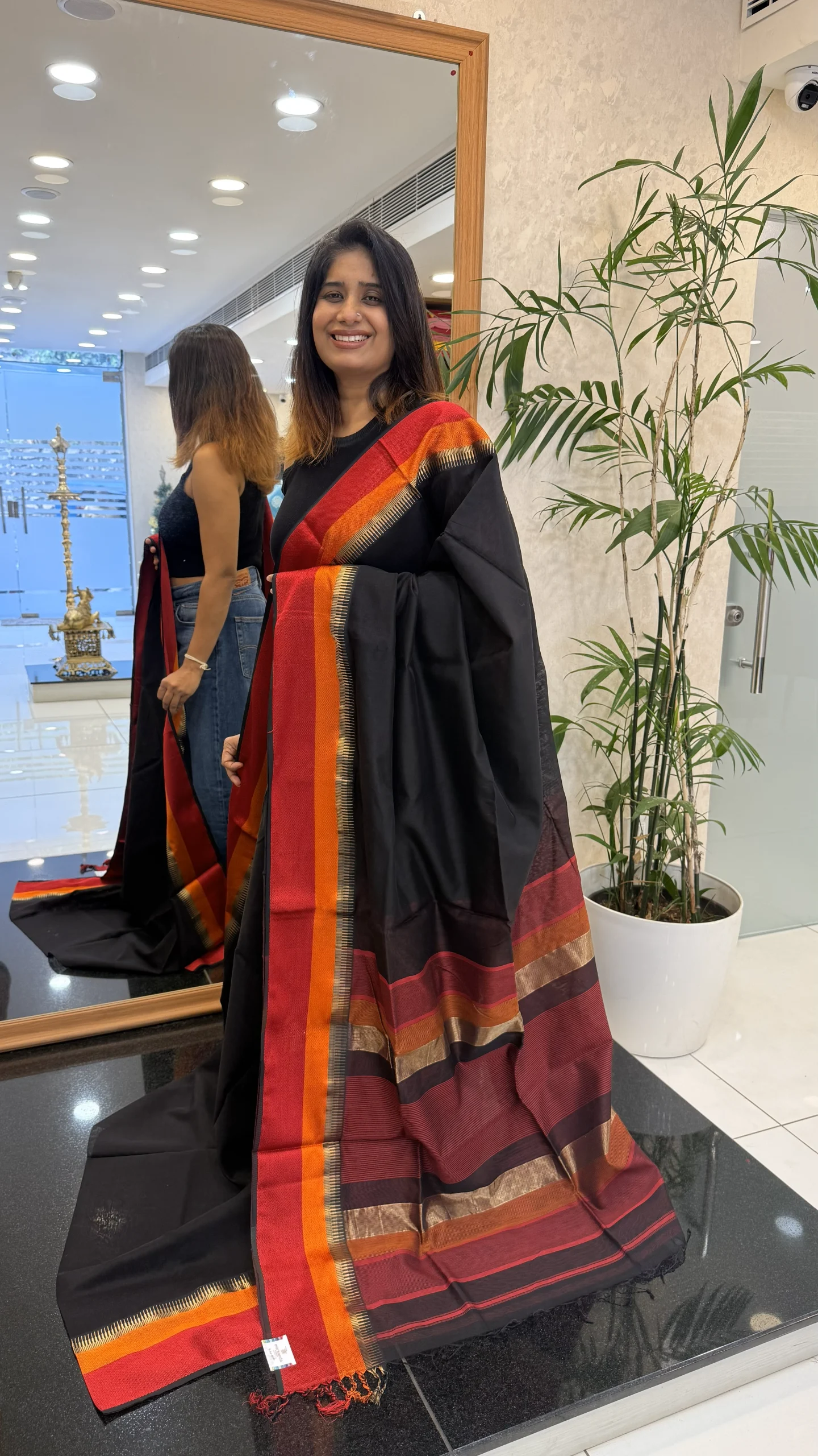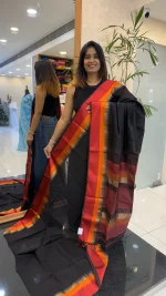 Add effortless grace to your ethnic wardrobe with this stunning Black saree, beautifully accented with bold red and orange contrast borders. Designed to blend tradition with elegance, this saree features a smooth, lightweight drape that ensures comfort while maintaining a rich, refined look.
