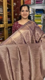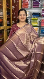 Step into timeless elegance with this exquisite Dark Purple silk saree, designed to reflect grace and sophistication. The saree showcases a soft yet beautifully complemented by intricate gold Zari weaving that adds a luxurious sheen throughout the fabric.