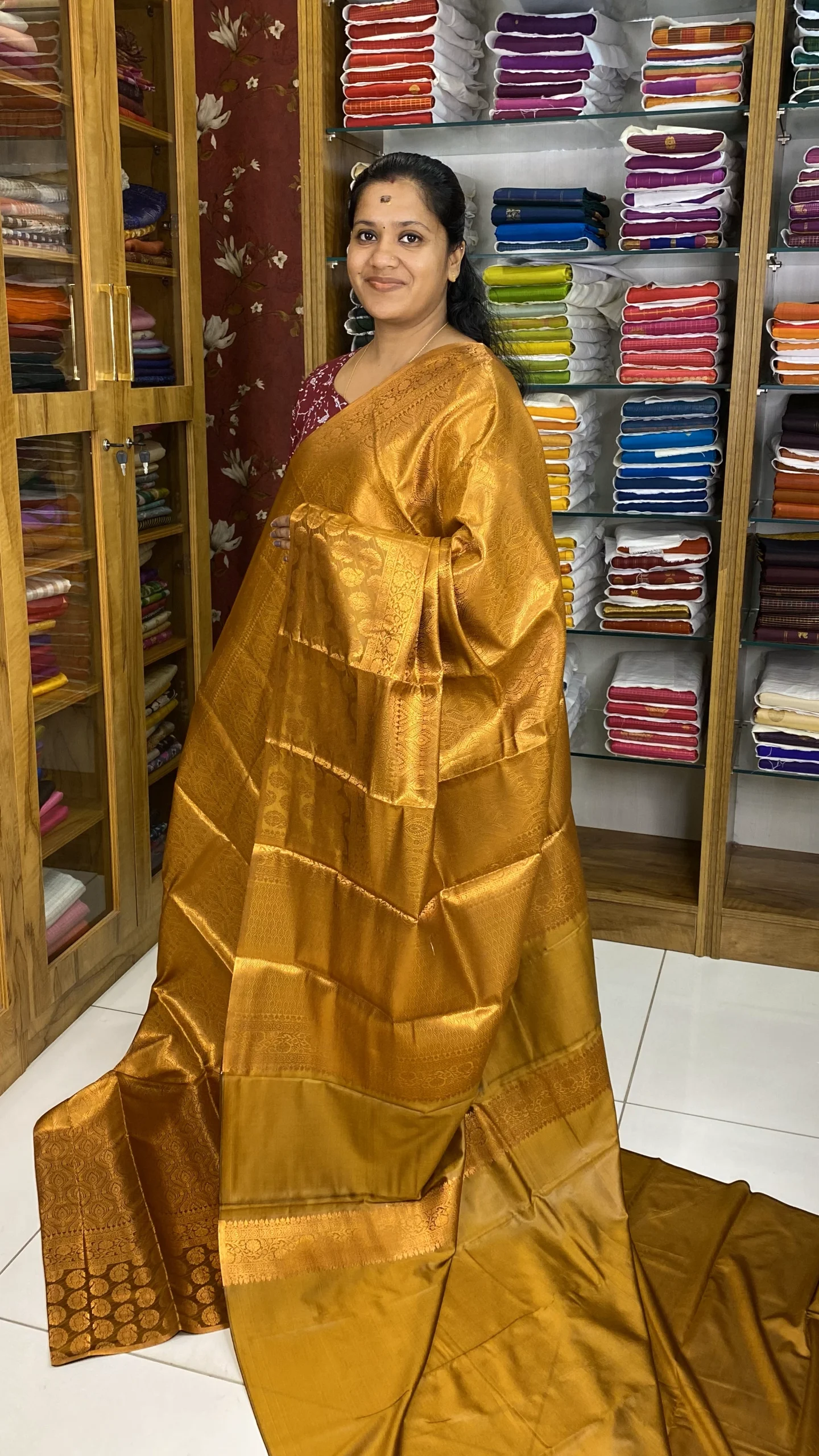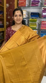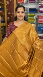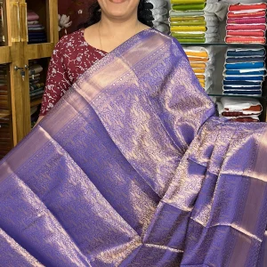 The body of the saree showcases subtle woven motifs that create a refined and graceful look. The highlight of this saree is its beautifully woven Zari border and detailed pallu, adorned with classic circular traditional patterns that enhance its richness and heritage appeal.