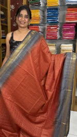 Home Budget Friendly Sarees Semi Tussar Brick Red and Grey:SBM57
