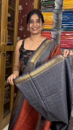The rich Brick Red body blends seamlessly with a striking Grey pallu and border, creating a captivating dual-tone effect that stands out effortlessly. The lightweight semi tussar fabric ensures comfort while maintaining a luxurious drape, making it ideal for long hours of wear during festive celebrations, weddings, or cultural gatherings.