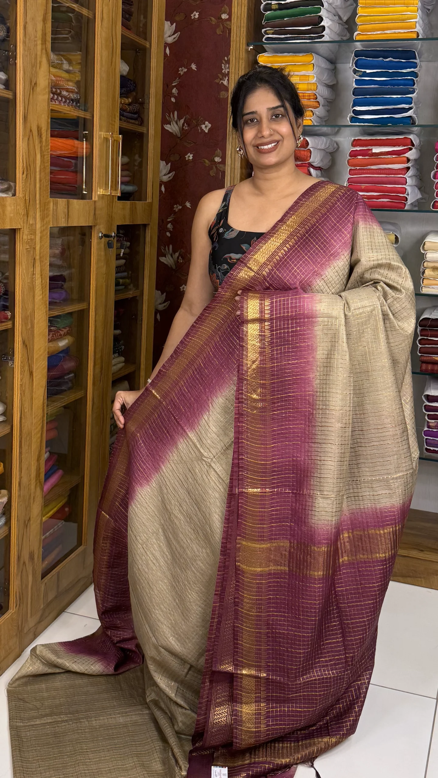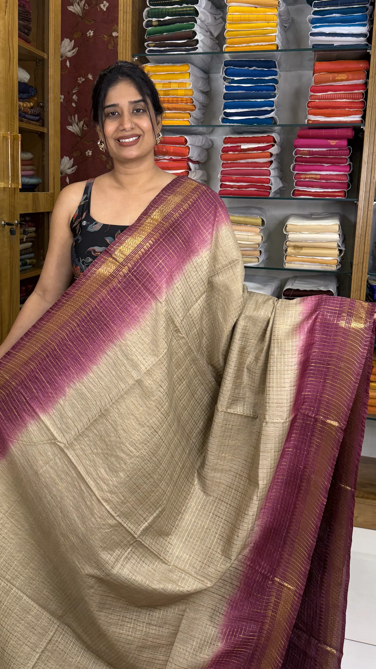 Step into timeless elegance with this beautifully crafted semi tussar saree, designed to bring out sophistication and grace. The saree showcases a unique zari check pattern that adds subtle shimmer and texture, enhancing its overall appeal.