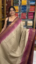 The rich Grey body blends seamlessly with a striking Wine pallu and border, creating a captivating dual-tone effect that stands out effortlessly. The lightweight semi tussar fabric ensures comfort while maintaining a luxurious drape, making it ideal for long hours of wear during festive celebrations, weddings, or cultural gatherings.