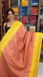 Home Budget Friendly Sarees Semi Tussar Peach and Yellow:SBM57