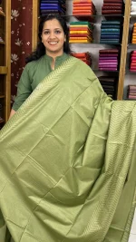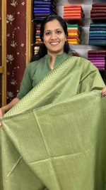 An elegant Algae Green semi tussar saree highlighted with intricate off-cream and self-thread weaving along the borders. Subtle, classy, and lightweight — perfect for festive gatherings, office wear, and special occasions.